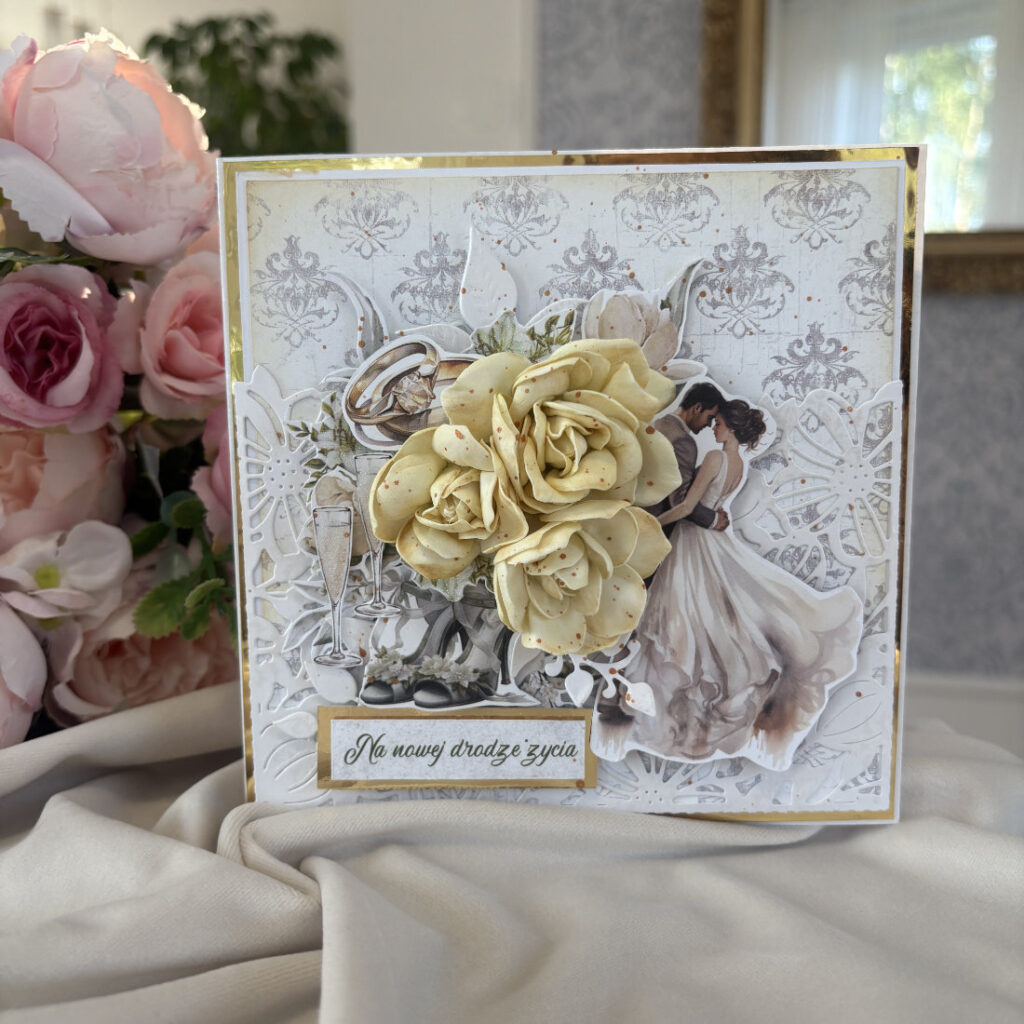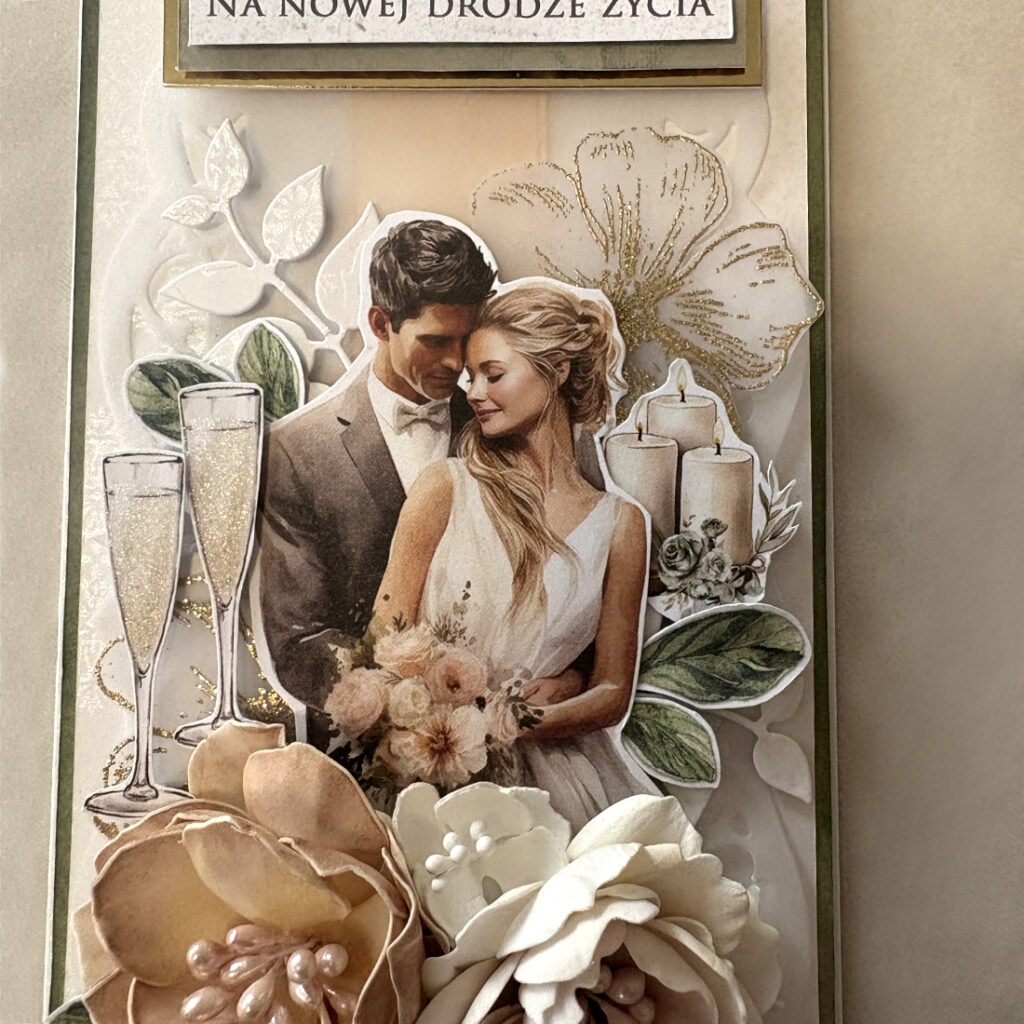 Prace emanują ciepłem, uczuciem i wyczuciem estetyki – idealne na wyjątkowy dzień, jakim jest ślub. Złocenia, romantyczne postacie pary młodej oraz detale takie jak kieliszki, obrączki czy latarenki dopełniają całości, nadając kompozycjom bajkowego wymiaru. Kolekcja Flower Power to nie tylko kartki – to emocje zamknięte w formie, pamiątki, które poruszają serce.