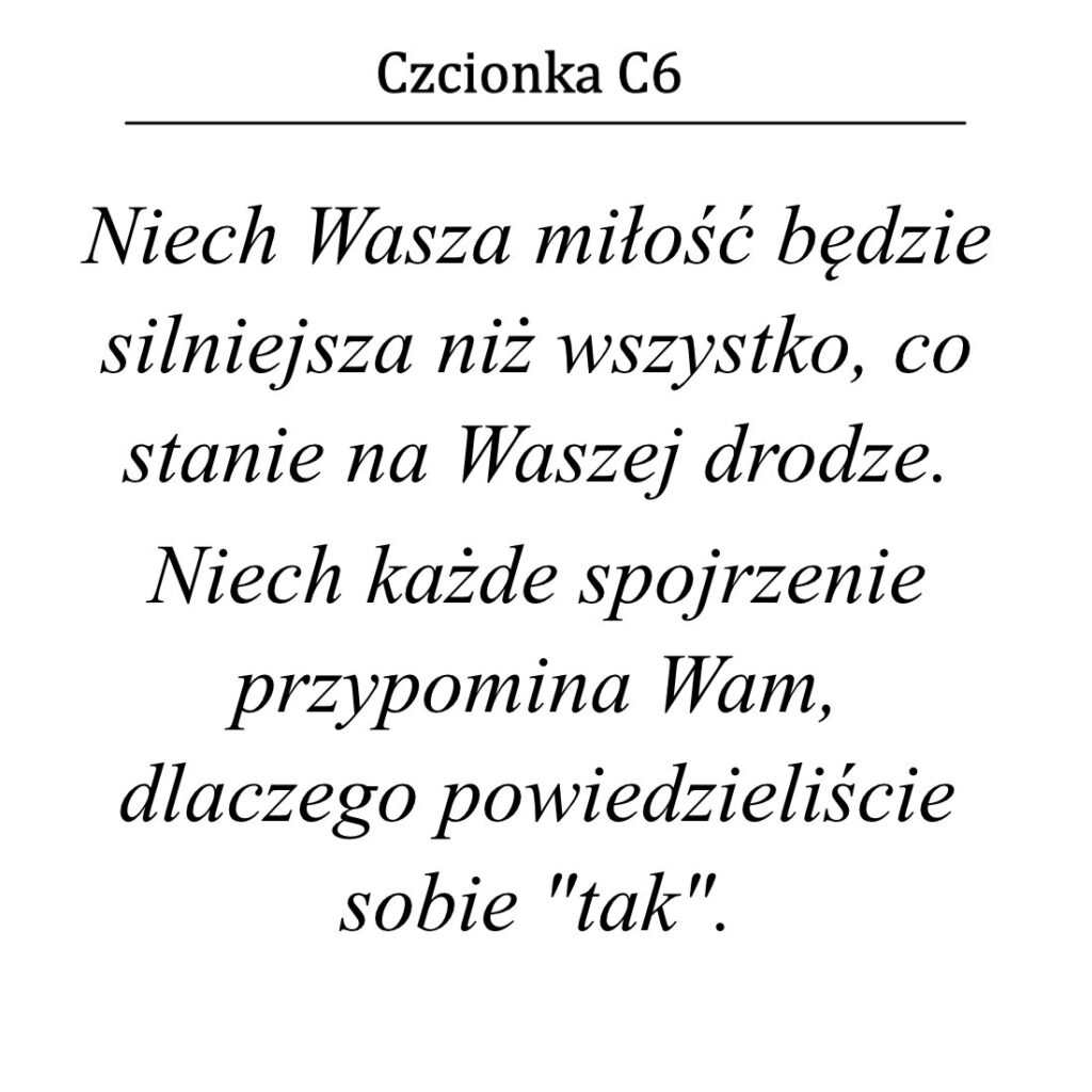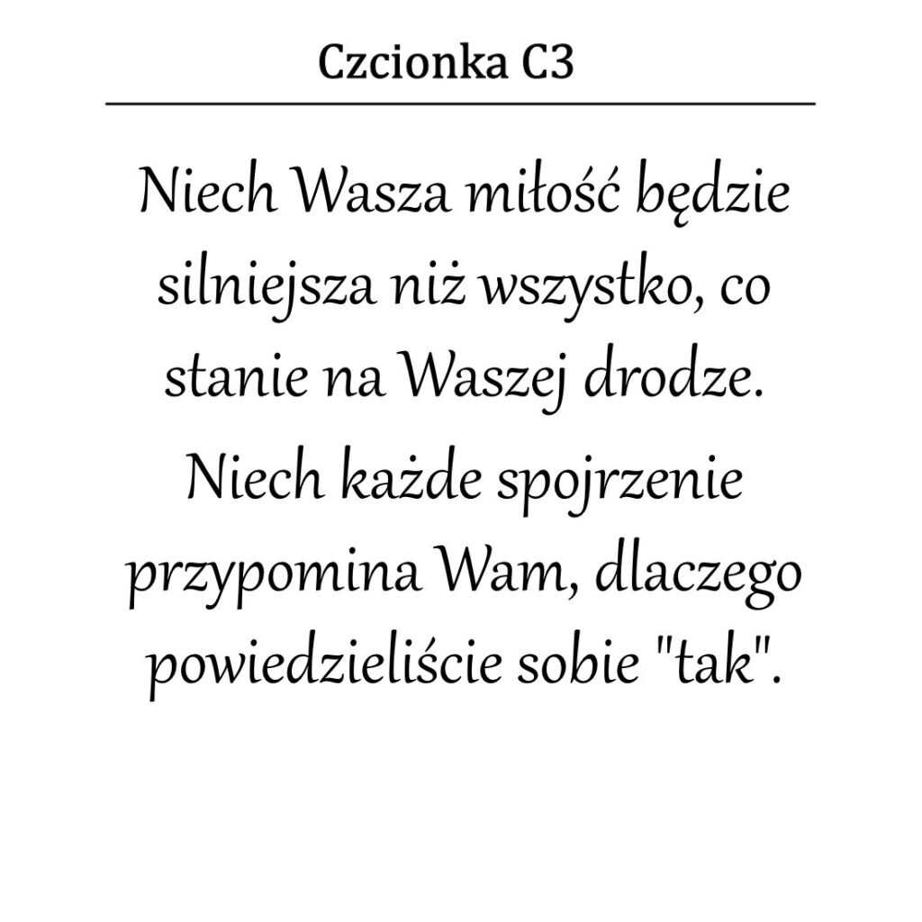 Poniżej przedstawiamy propozycje życzeń ślubnych w wielu wersjach. Jeśli życzenia mają być już wklejone do kartki w zamówieniu prosimy o podanie odpowiadającemu ich numerowi oraz numer wybranej czcionki.