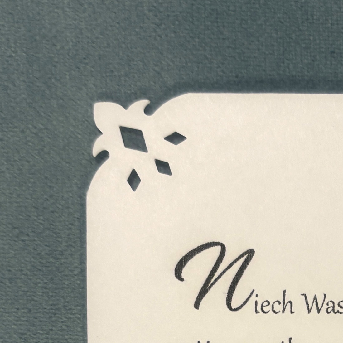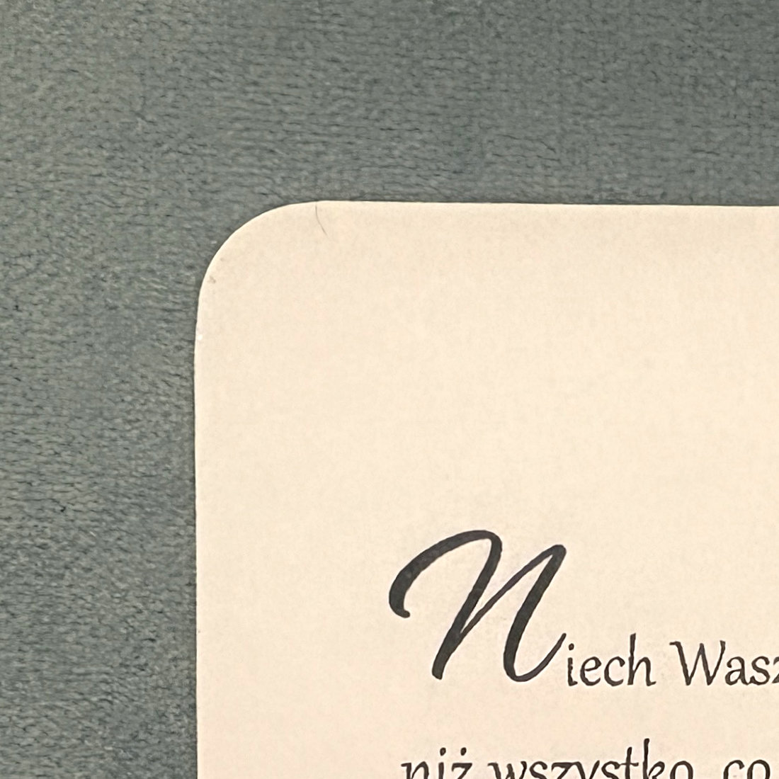 Nasze kartki personalizujemy na życzenie klienta. Umożliwiamy: wklejenie życzeń z naszej bazy lub przesłanych przez klienta, wybór czcionki, wybór ozdobnych narożników przy wkładce z życzeniami oraz wklejenie kieszeni na pieniążki.